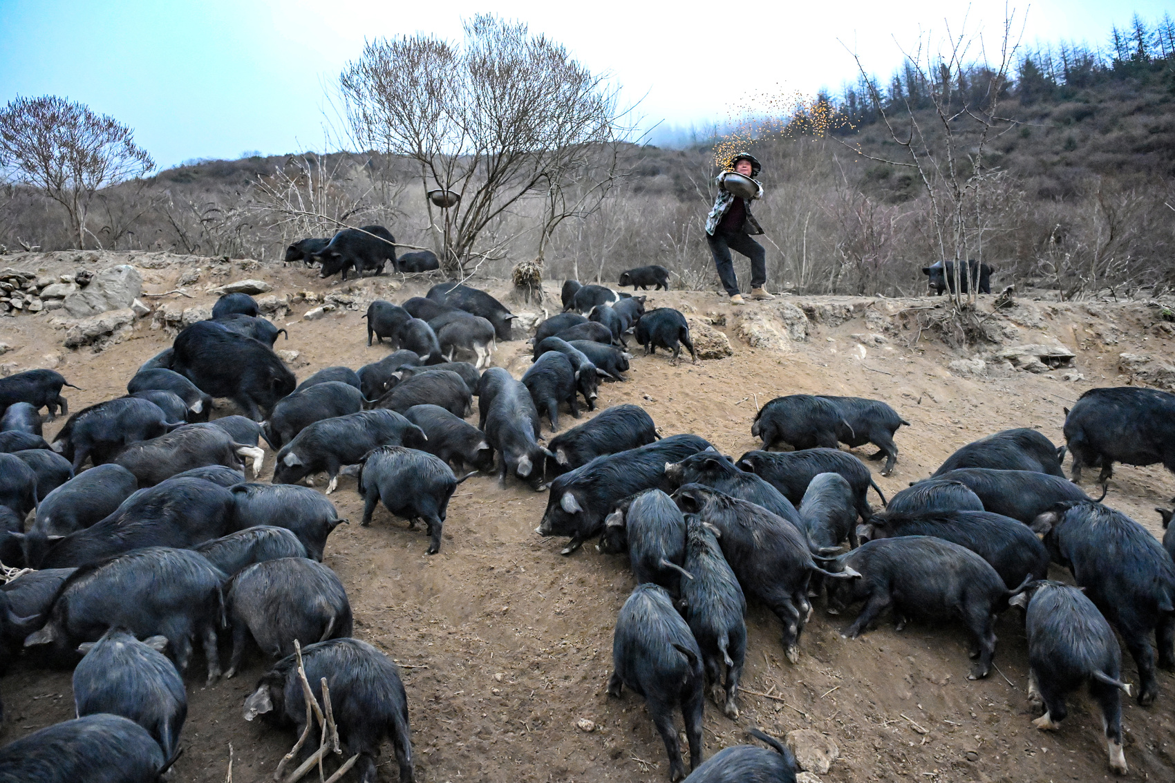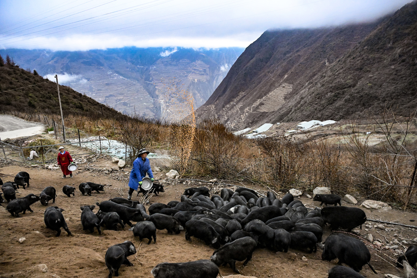 2026年3月13日,在云端之上的四川省阿坝州汶川县灞州镇周达村藏香猪基地。