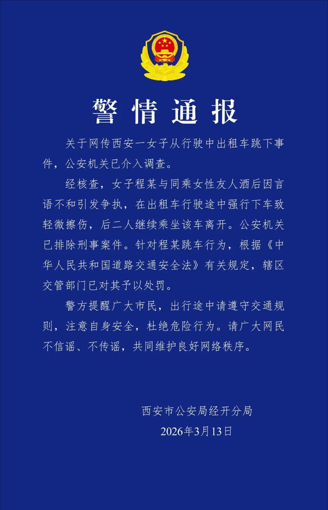 西安市公安局经开分局3月13日发布警情通报。