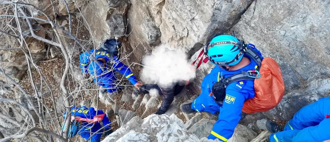 3月11日下午,北京房山蓝天救援队9名队员正在进行山野拉练,就在拉练结束准备返回时,得到消息有人被困于这座野山。队员们迅速将拉练转为实战救援,接着,队里又迅速派出18名队员前往支援,一场悬崖救援行动就此展开。