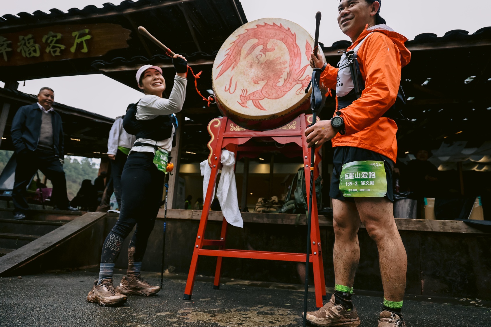赛事终点,仪式感拉满。当首组选手冲线,震天擂鼓与高亢唢呐同步奏响,赋予冲线时刻独特的“仪式感”。“太震撼了!听到唢呐和鼓声,感觉自己是凯旋回来的。”冲线后的绵阳选手马卓元喘着气,额头上还挂着汗水,“跑完这一路,看了古村、喝了新茶、吃了耙耙柑,真好!”