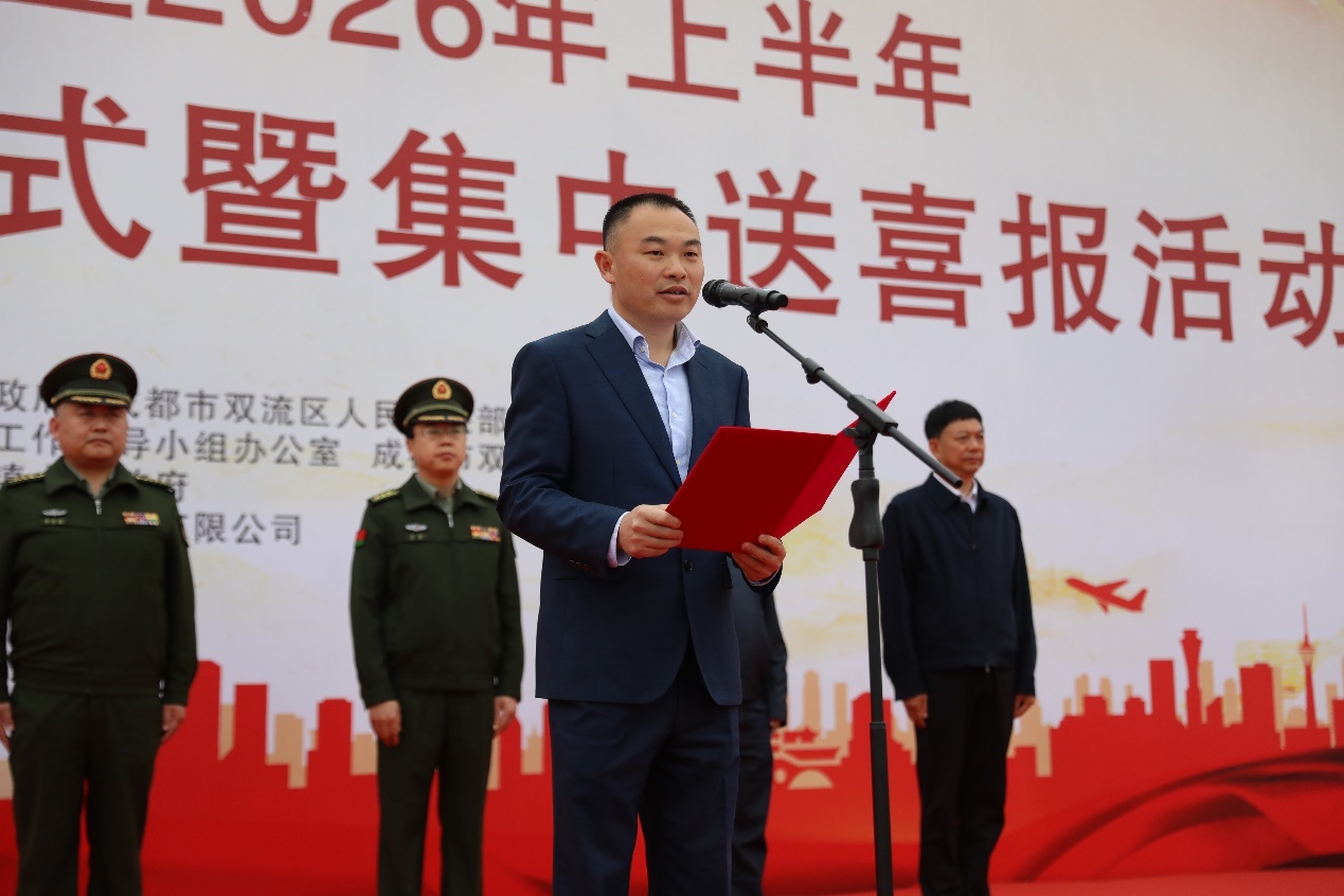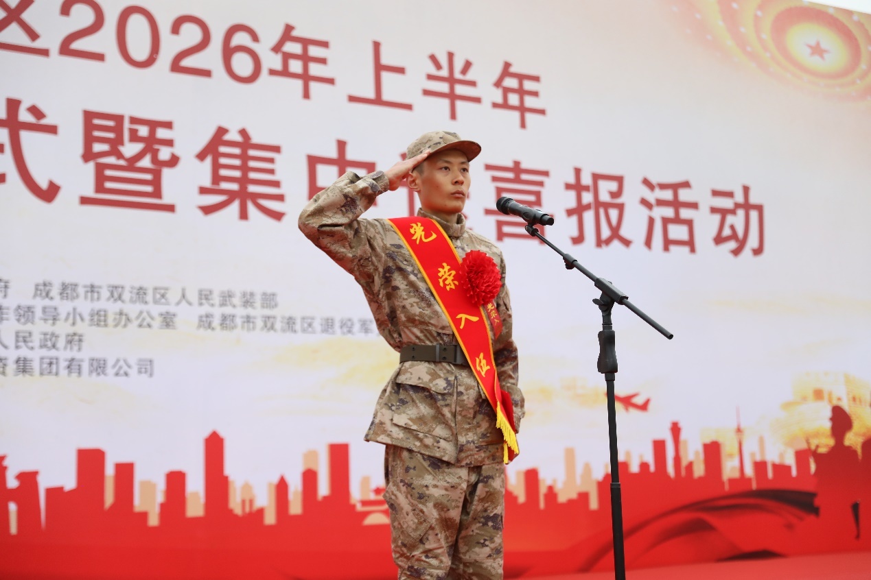 “双流是千年古都,在广都博物馆举行本次活动,有着重要而特殊的意义。大家所在的牧马山,相传是三国名相诸葛亮牧马练兵之地,有着非常浓厚的军事文化底蕴。”区退役军人事务局党组书记、局长黄庆华在致辞中表示,“今天,新战友们从这里整装出发,接过了历史的接力棒,续写着保家卫国的壮丽篇章。希望你们牢记使命、刻苦训练,争当有灵魂、有本事、有血性、有品德的新时代革命军人,在练兵备战、遂行任务中勇立战功,为军旗增辉,为双流争光!”