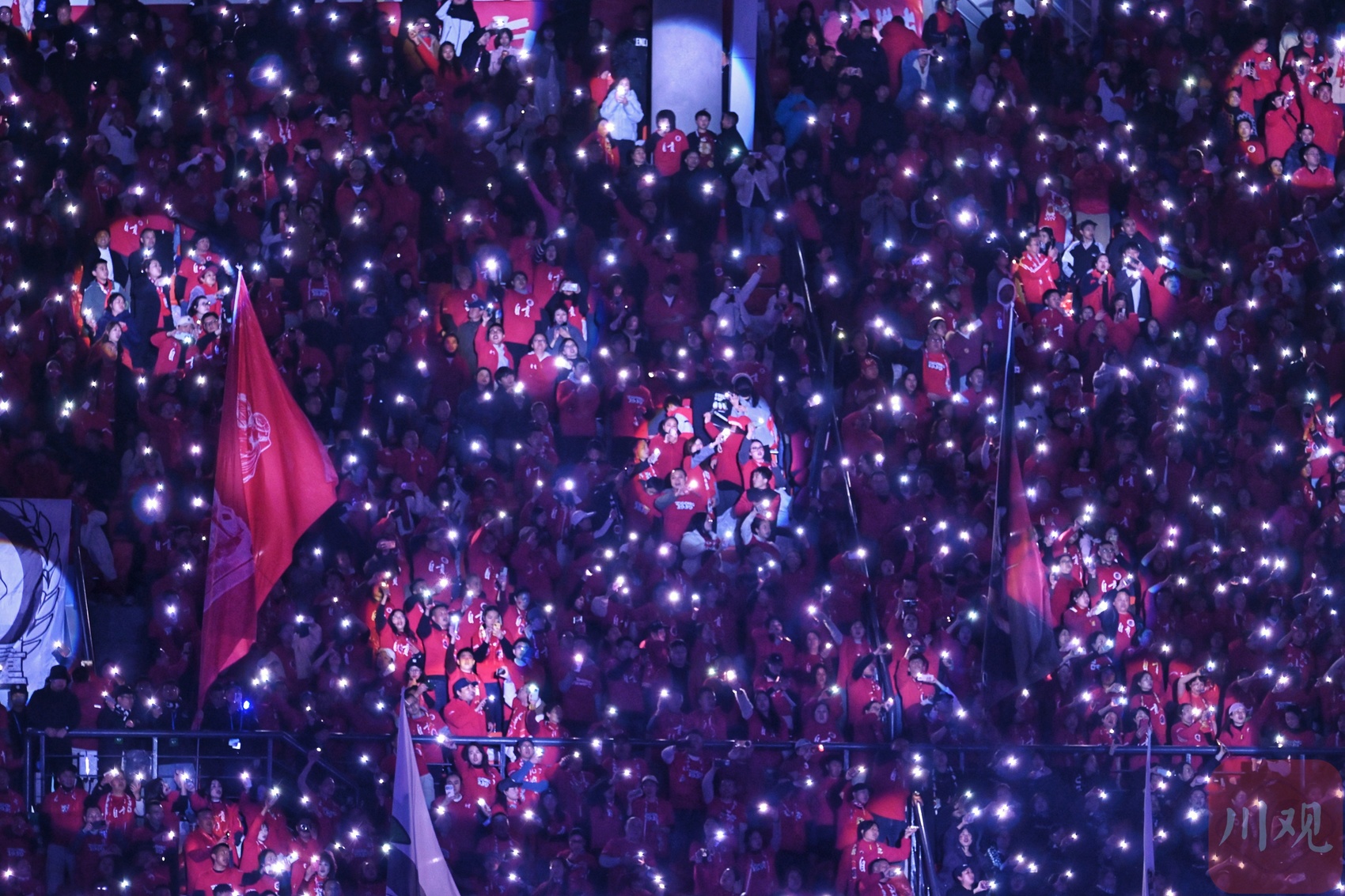 自贡队球迷点亮手机欢庆胜利。