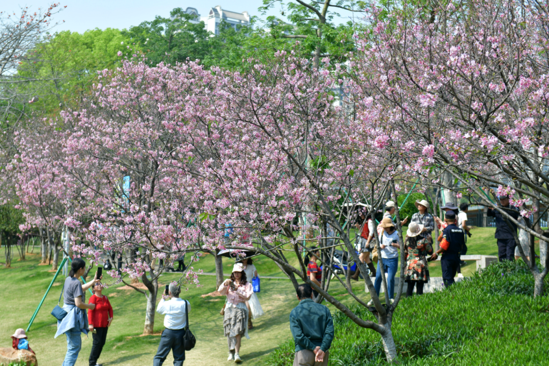 市民在公园赏花