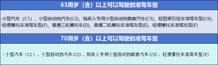 年龄在70周岁以上办理恢复C1、C2、C5、F车型的;