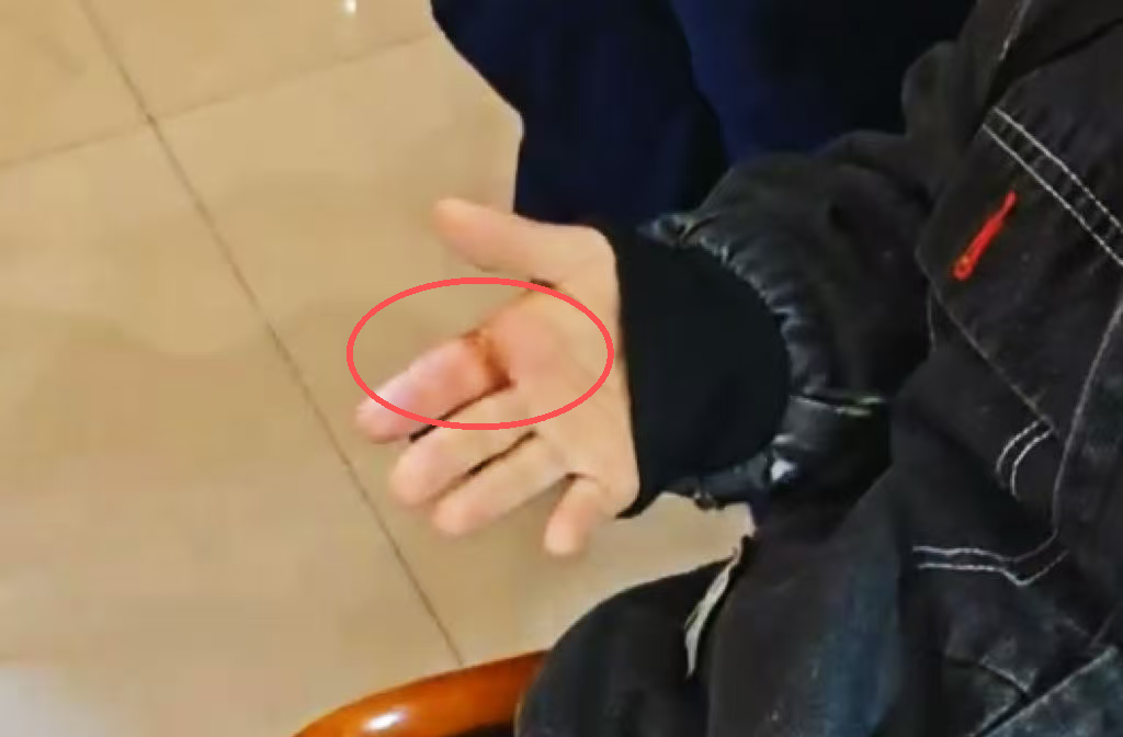 “蝴蝶刀”被取下后,男孩手指留下一道红痕。图源:南通消防