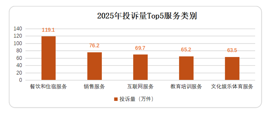 2025年,全国市场监管部门受理商品投诉1320万件,同比增长8.1%,占受理投诉总量的64.8%。受理服务投诉716.6万件,同比增长11.7%,占受理投诉总量的35.2%,服务消费领域投诉增长态势明显。