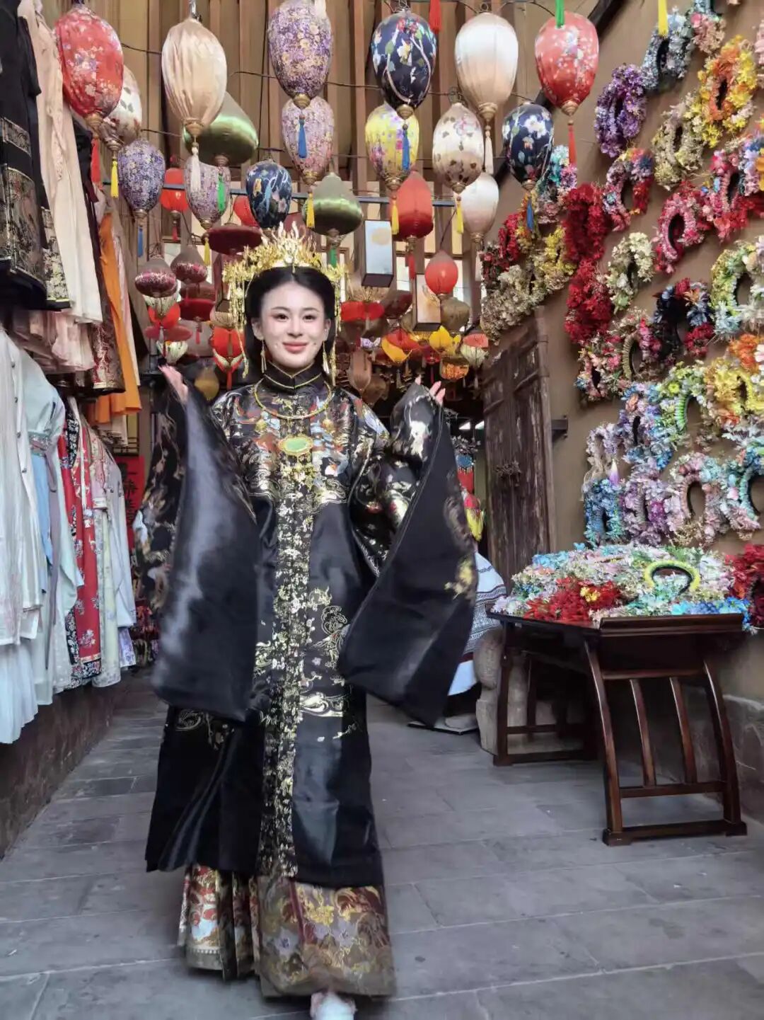 服务配套同步提档升级,景区组建800人规模的汉服租赁、簪花造型、美妆妆造、跟拍录制直营团队,联合街区商户打造日接待能力达2000人的核心消费场景,打通妆造、簪花、拍摄全流程环节,实现“来了即簪、簪好即拍、拍即出片”的便捷服务,让游客零门槛感受簪花乐趣。