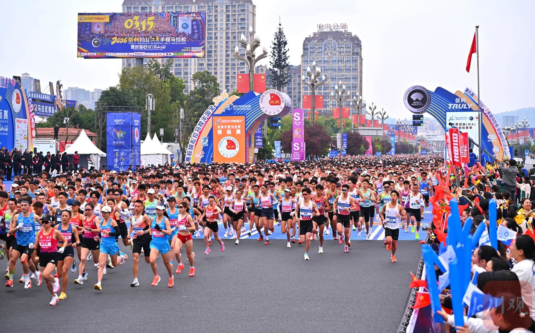 3月15日,2026全国半程马拉松锦标赛暨第九届信利眉山仁寿半程马拉松・跑遍四川(眉山站)开跑,2万名跑者齐聚赛道参与角逐。