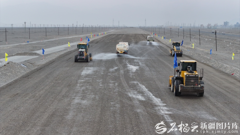 3月12日,施工人员在S12高昌(吐鲁番)—托克逊—巴仑台公路上施工。新疆交通投资(集团)有限责任公司供图
