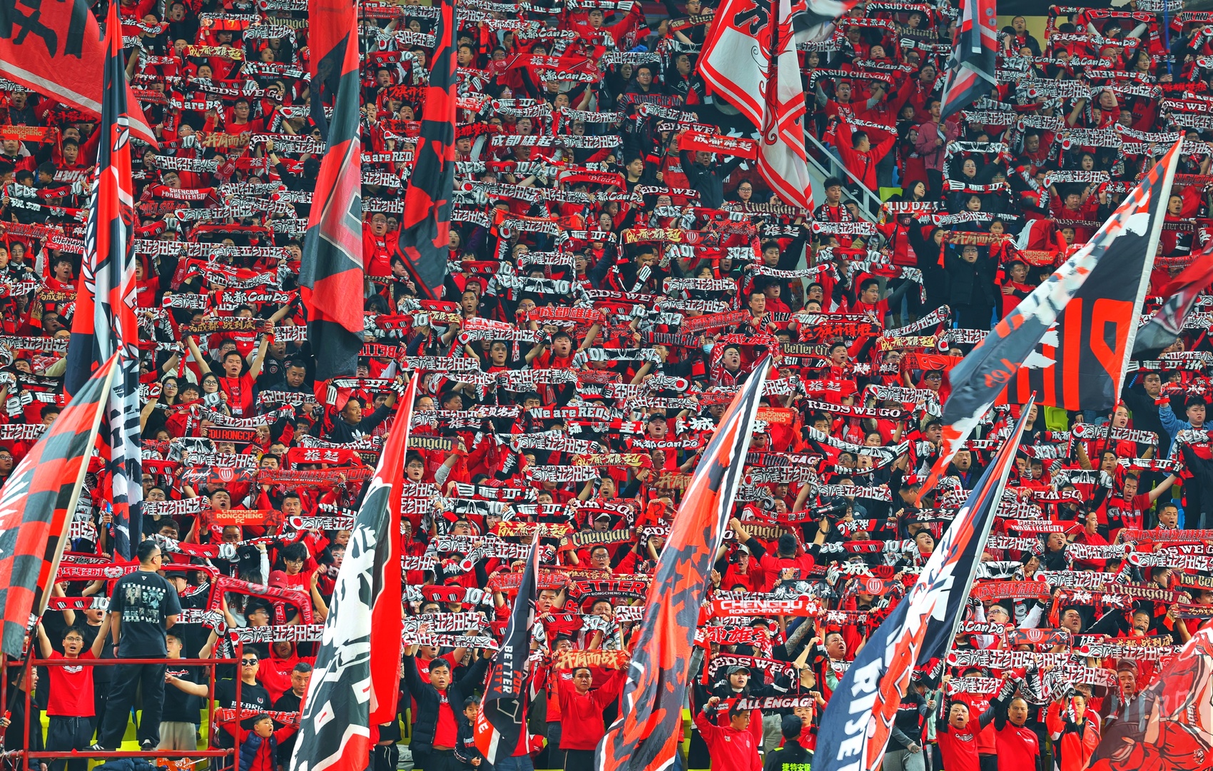 成都蓉城球迷为球队助威。