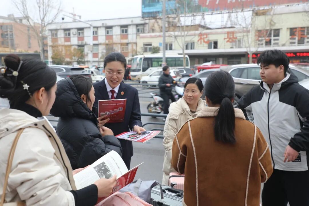 2026年2月25日,农历正月初九,正值外出务工高峰期,杞县检察院干警来到该县汽车站附近进行普法宣传。
