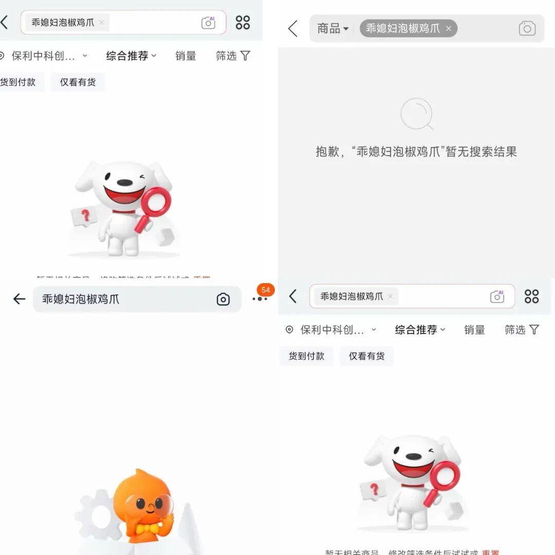 另据新黄河报道,当晚记者在淘宝、京东、拼多多、抖音电商检索“乖媳妇泡椒鸡爪”后发现均已显示无相关商品或暂无搜索结果,抖音电商平台显示,“重视食品安全。关注身体健康。”