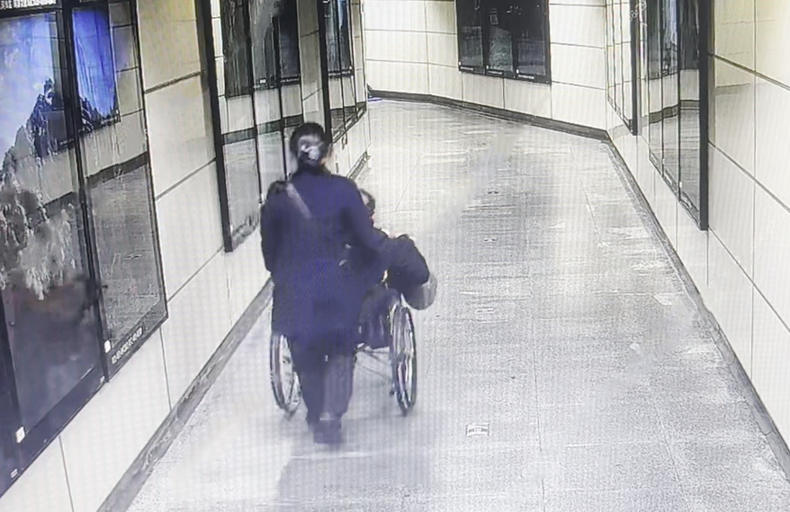 辗转坐上地铁1号线的末班车,抵达火车北站时他实在精疲力竭,便询问车站工作人员,“可以借我一个轮椅吗?”