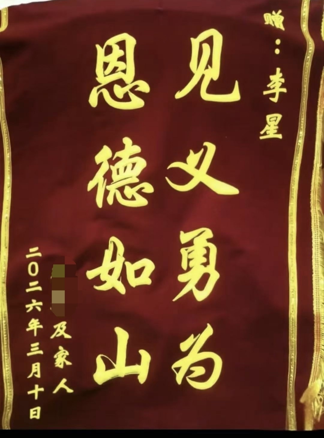 事后,女孩家人专程送来锦旗表达谢意。李星拍照留念后却坚持退回,只反复叮嘱一句话:“低调一点就好,千万别让我老婆知道。”