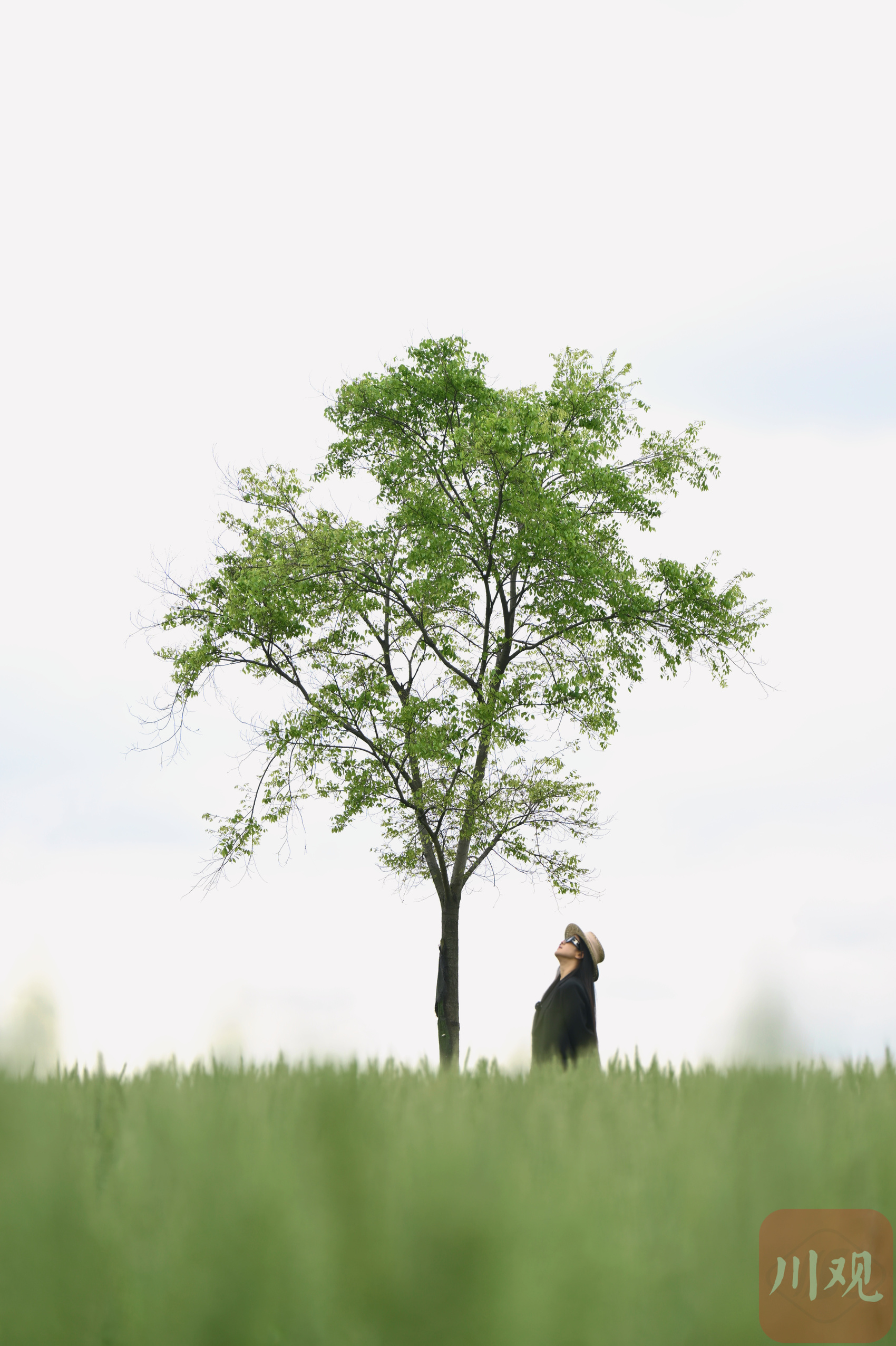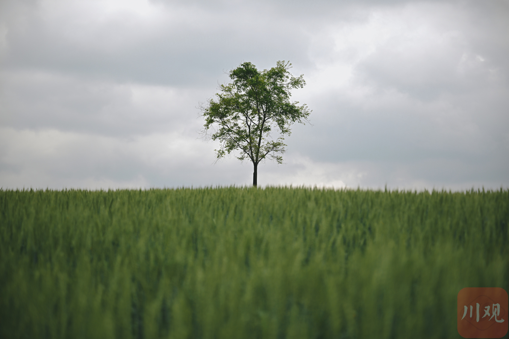 绿色麦田里一棵树