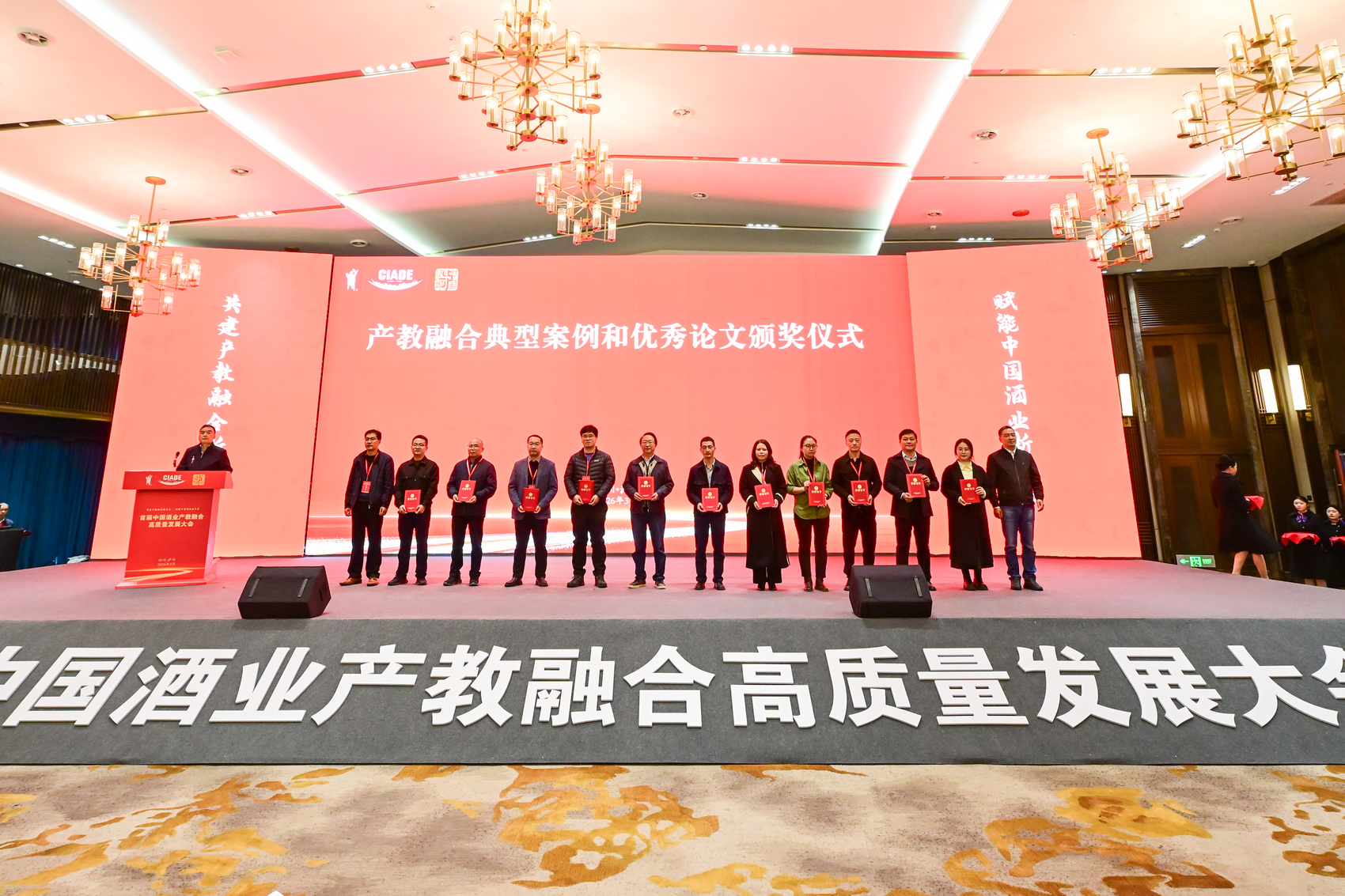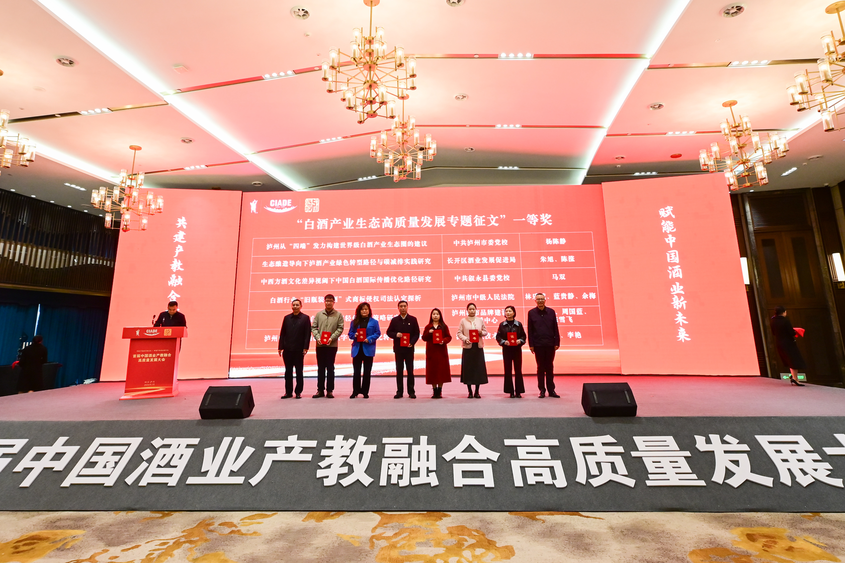 为进一步集聚行业智慧,总结推广中国酒业产教融合共同体内的先进经验与典型做法,大会现场同步举行了产教融合典型案例发布及优秀论文颁奖仪式。今年年初,中国酒业产教融合共同体、四川省酒文化研究会、泸州市社科联联合面向全行业开展酒业产教融合高质量发展典型案例与优秀论文征集工作,共征集到相关论文、典型案例116篇,经过大会专家组严格评审,最终评选出优秀论文2篇、典型案例10个,同时评出“白酒产业生态高质量发展专题征文”一等奖6项。