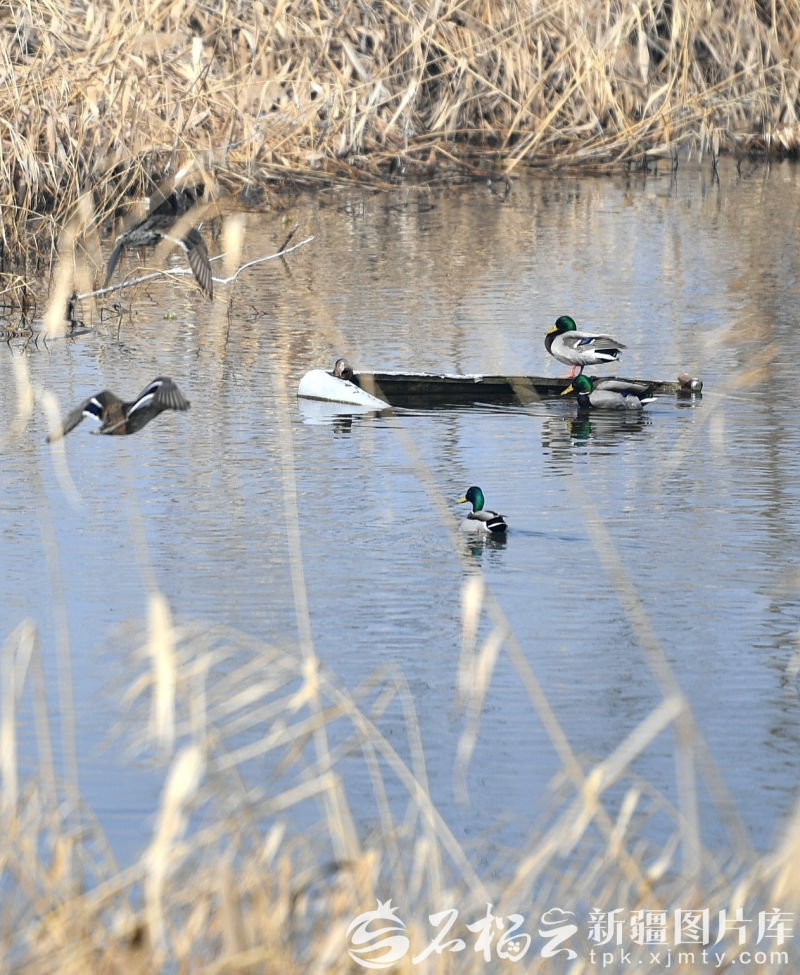 3月6日,几只野鸭在乌鲁木齐市水磨河滨水景观带游弋和栖息。石榴云/新疆日报记者 邹懿摄
