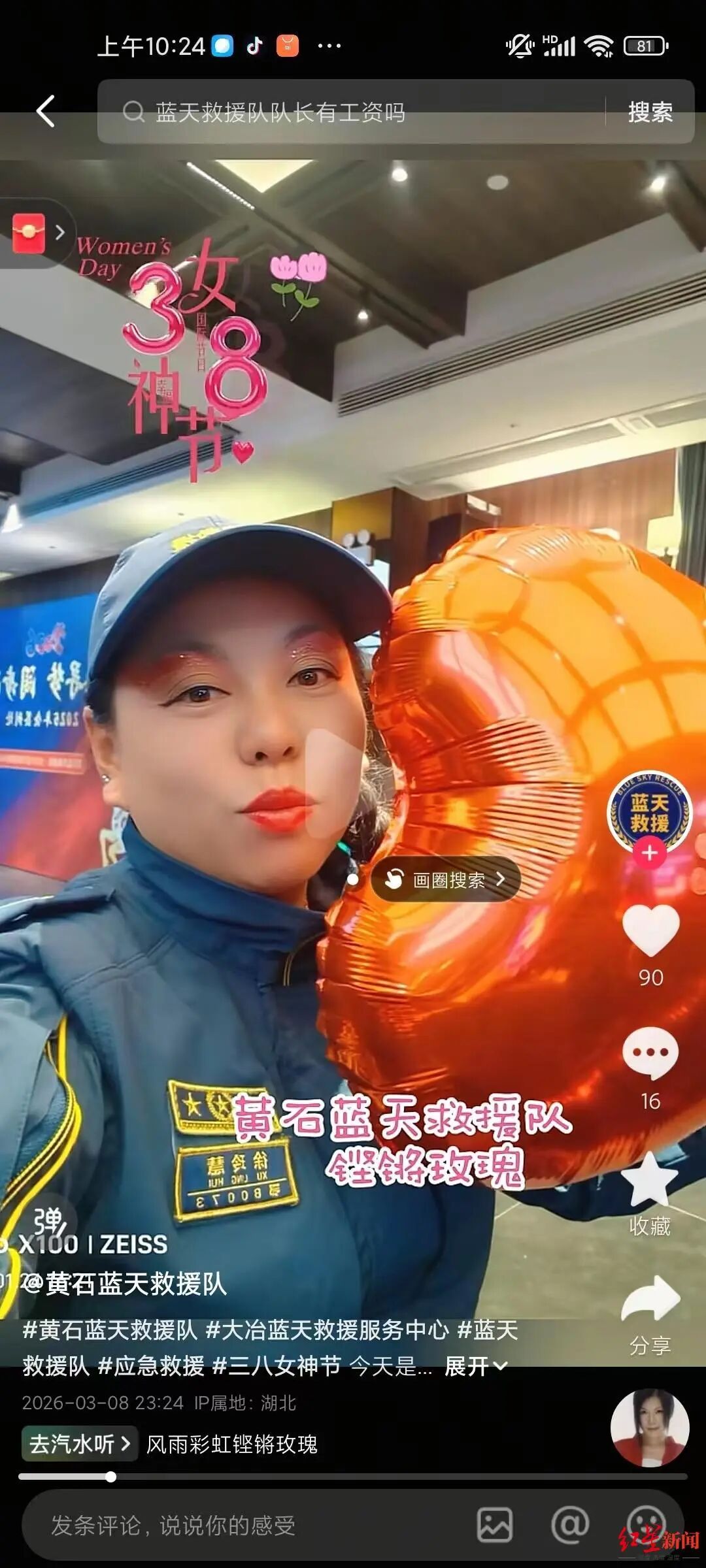 红星新闻记者了解到,“猫姐”本名姓徐。3月8日,黄石蓝天救援队为庆祝“三八”妇女节发布的视频里,猫姐穿着带有自己名字和编号的救援队队服出现在画面里,画着淡妆,笑容充满活力。其岩降遇难的消息在网上传开后,有熟悉她的人留言说:“已经难过得两个晚上没有睡着。”