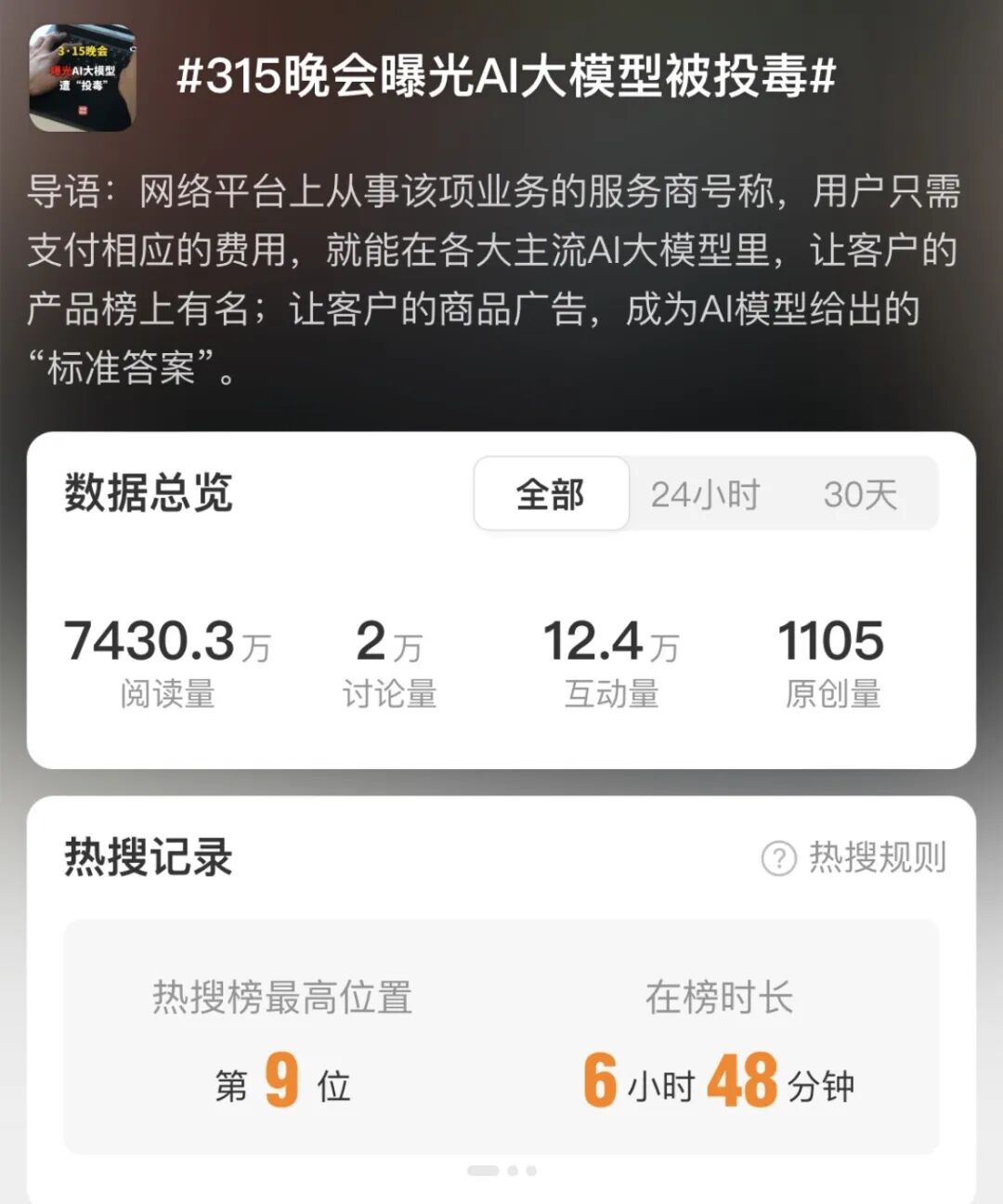 昨晚(15日),“AI大模型被投毒”“给AI投毒已成产业链”等相关话题词条冲上热搜。