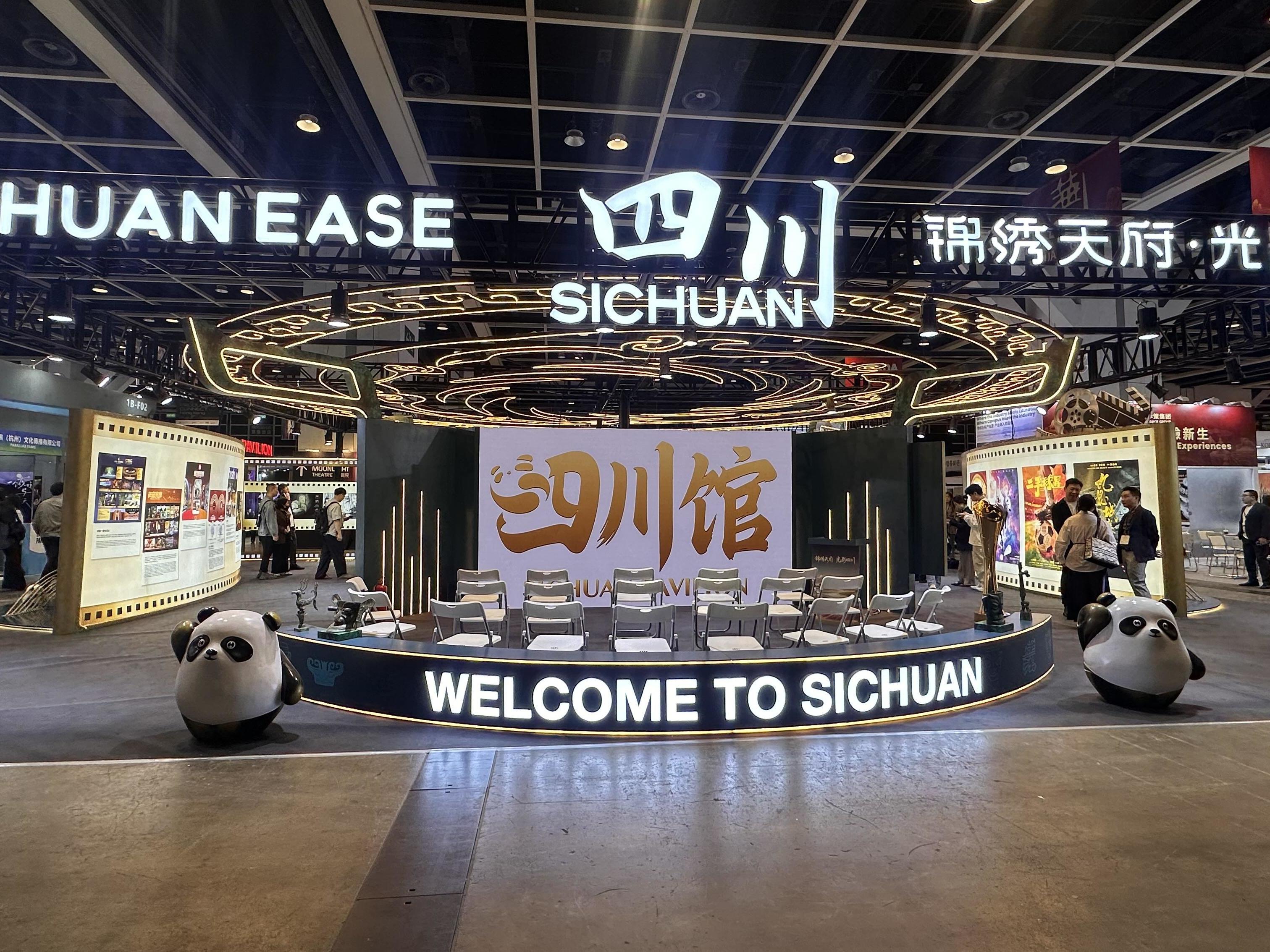 随着红色帷幕拉开,“四川馆”牌匾亮出,展区内大屏同步点亮,标志着四川影视力量再次亮相这一亚洲重要影视交易平台。
