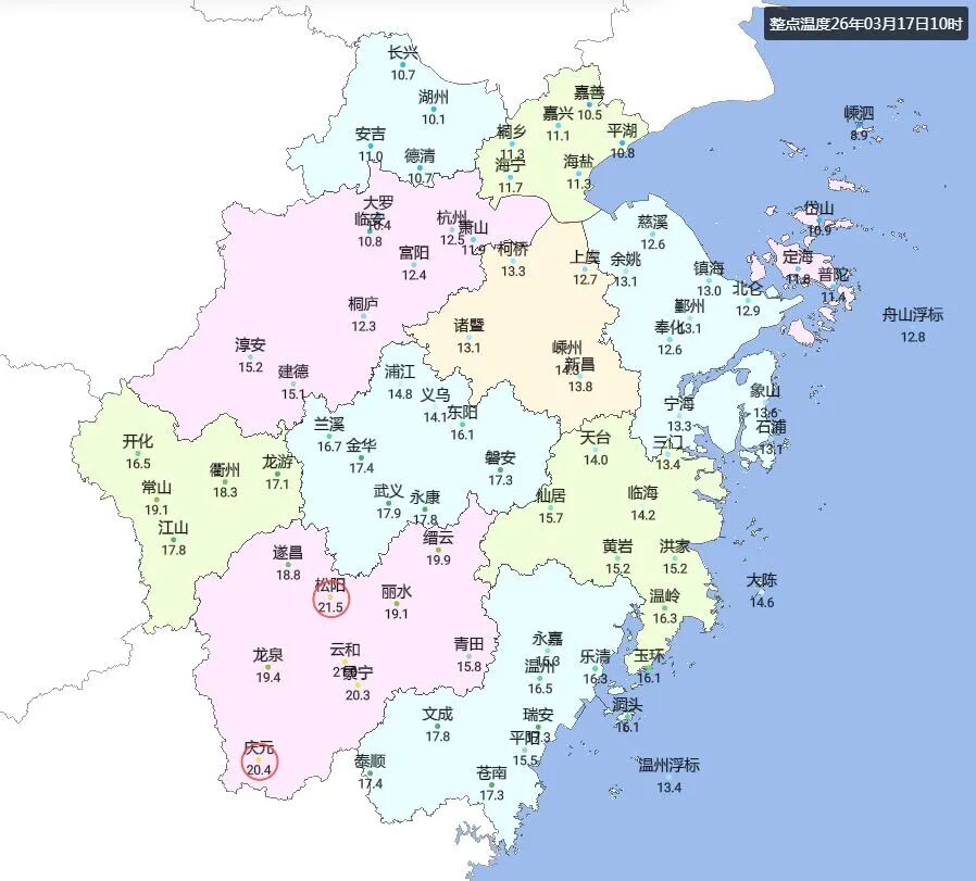 知道现在丽水多少度了吗?上午10时,丽水大部地区气温已经冲上20℃!