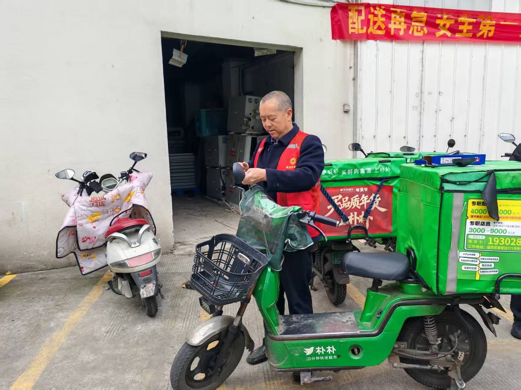 3月16日上午9点多,成都市成华区朴朴超市(成华崔家店)站点,配送员小陈趁着接单间隙,推着自己的电动自行车走过来。维修师傅杨汉明立刻迎上前,熟练地开始检查车辆刹车、轮胎气压和后视镜。不到二十分钟,几个小毛病就被解决了。