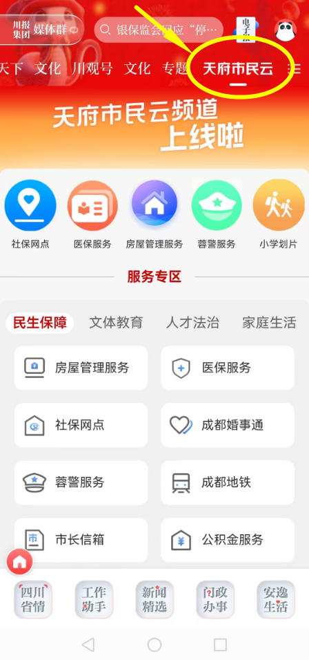 打开川观新闻APP,进入“天府市民云”频道,开启您的便捷办事之旅。