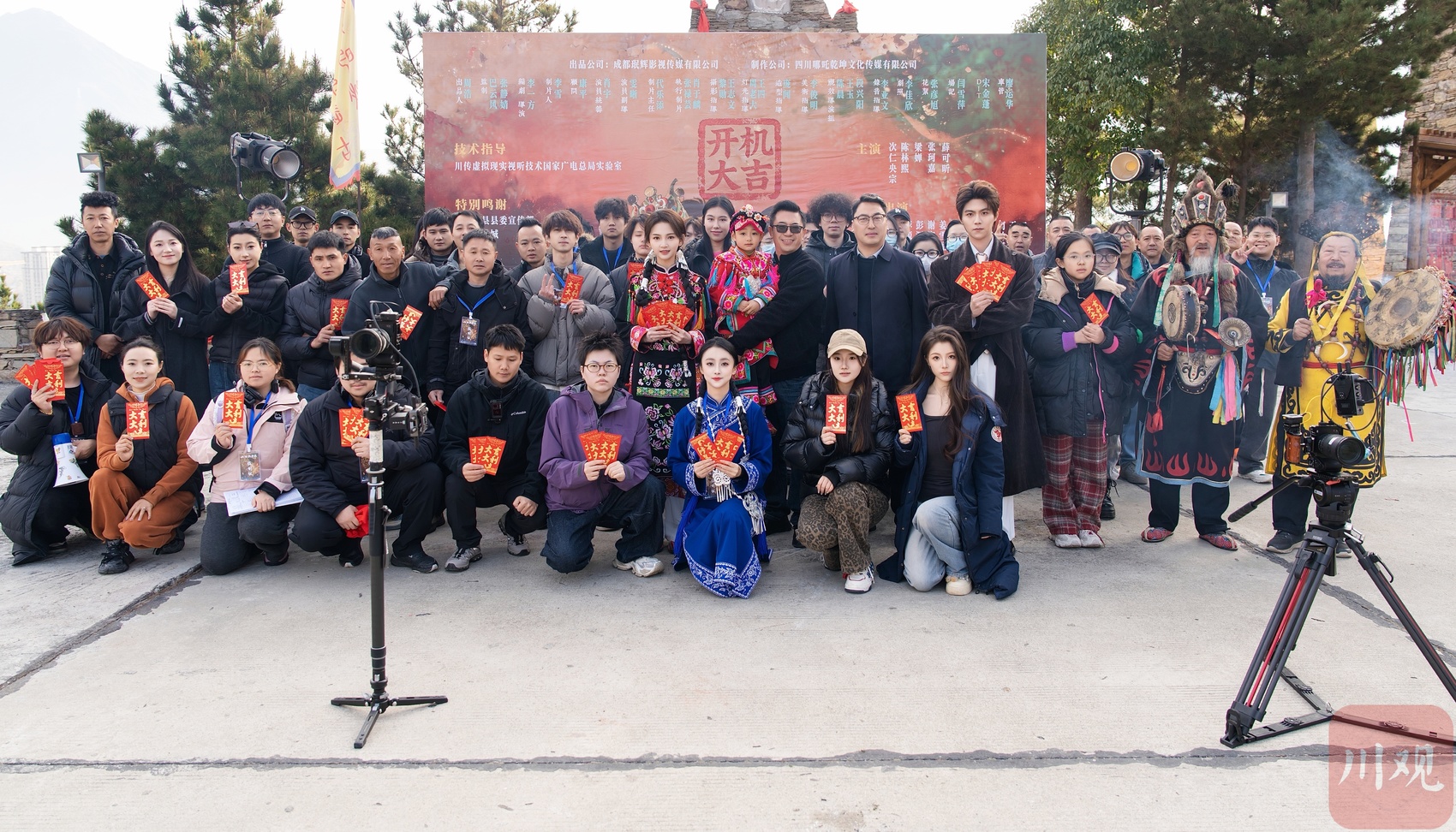 非遗题材微短剧《山海诡事录》剧组成员在开机仪式上合影。