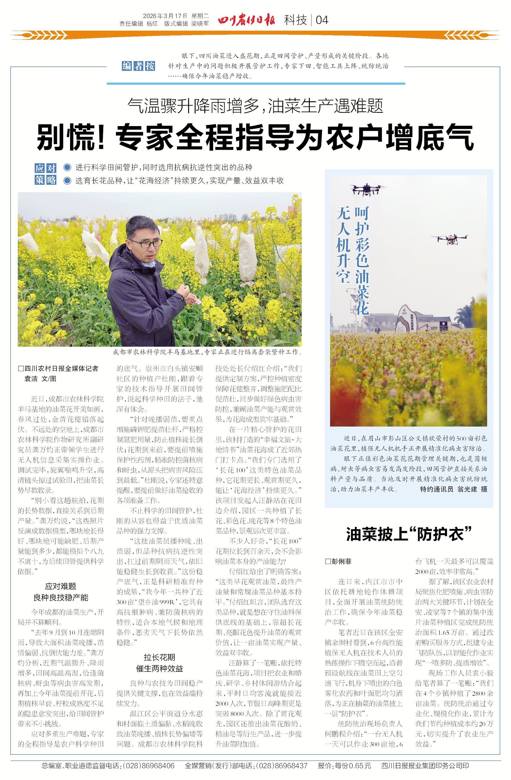 气温乱飙+雨水突袭,油菜要扛不住了?别慌!专家天团直接下田,无人机上天,把油菜长势盯得死死的!