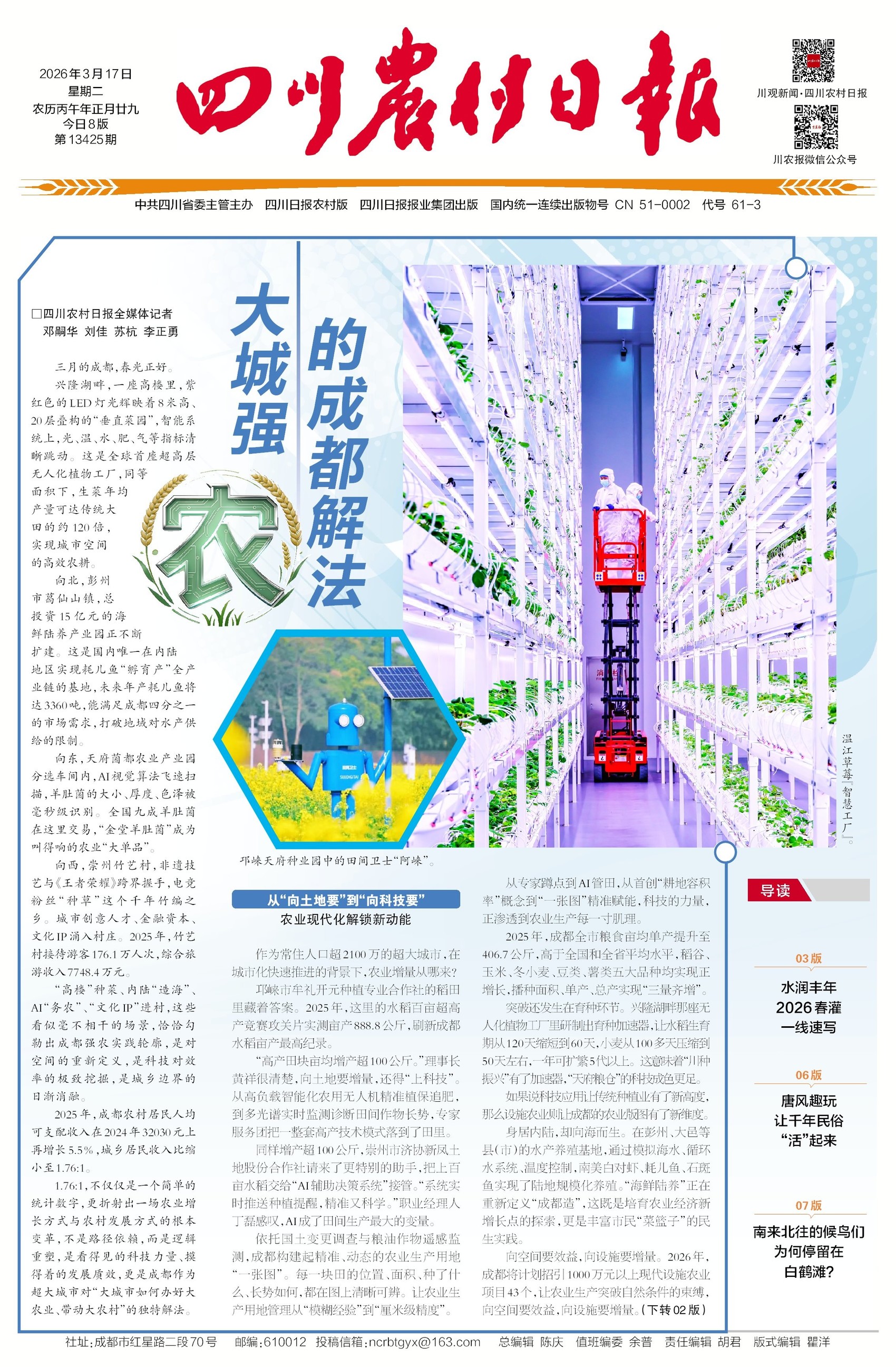 想知道成都怎么把农业玩出新高度?看今天头版头条,了解“大城强农”的独特解法!