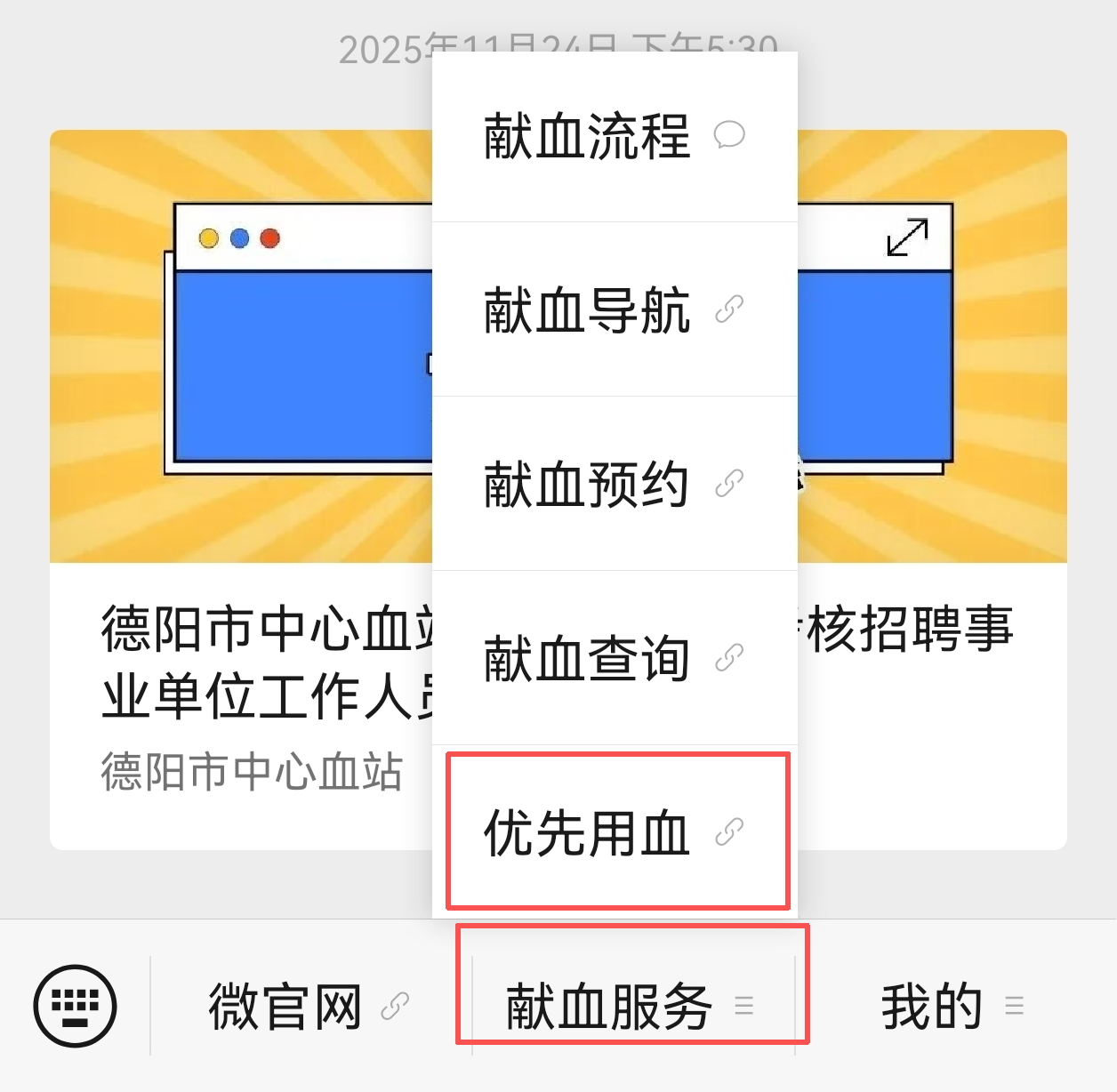 为解决献血者及亲属用血难题,2025年9月23日,德阳市中心血站开通“优先用血网上申请通道”。如今,在德阳献血的市民只需关注“德阳市中心血站”微信公众号,通过“服务栏”进入“献血服务”,点击“优先用血”完成实名认证,即可一键提交本人或亲属的优先用血申请。通道开通至今,已有870名献血者成功提交申请,让爱心循环跑出加速度。