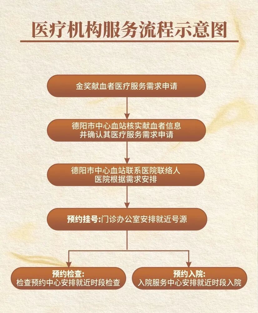 四川省金奖献血者医疗服务相关流程图 德阳市中心血站供图