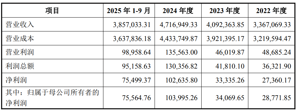 这一系列资本运作背后,是申通快递持续向好的业绩支撑。数据显示,2022年至2024年,公司营业收入分别为336.71亿元、409.24亿元和471.69亿元,归母净利润分别为2.88亿元、3.41亿元和10.40亿元,呈现出稳定且持续的增长态势。2025年前三季度,公司实现营业收入385.70亿元,归母净利润7.56亿元。