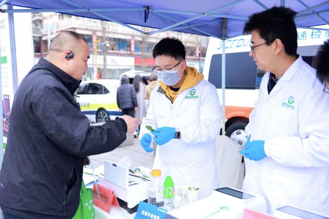 活动现场,成都市食检院等专业机构聚焦食品消费领域,将食品快速检测服务搬到群众身边,开展食品现场快检,直观展示食品安全监管力度,现场解答居民食品消费疑问,回应民生需求,筑牢食品安全底线。