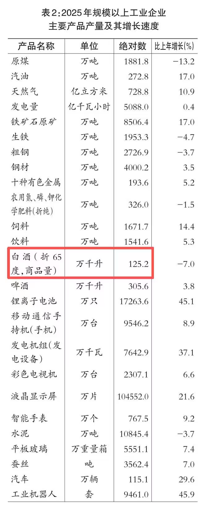 3月17日,四川省统计局、国家统计局四川调查总队发布《2025年四川省国民经济和社会发展统计公报》。公报显示,报告期内全省规上企业实现白酒产量125.2万千升,同比下降7%(折65度、商品量)。另据此前国家统计局发布数据,2025年1—12月,全国累计实现白酒产量354.9万千升,下降12.1%(折65度、商品量)。由此测算,川酒产量占全国比重逆势攀升至约35.28%。