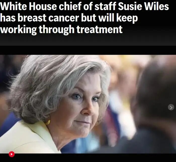 据报道,美国总统特朗普在社交媒体上也公布了这一消息。他写道,怀尔斯在得知诊断结果后,“已决定立即直面这一挑战,而非选择等待”。他还称,她的预后情况“非常好”,并在治疗期间将“几乎全天候”留在白宫工作。