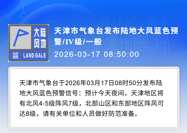 目前我市已发布陆地大风蓝色