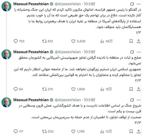 当地时间3月16日晚,伊朗总统佩泽希齐扬在社交平台X上发文称,他在与法国总统马克龙通话时强调,伊朗并非“这场残酷战争的始作俑者”,面对侵略进行防御是伊朗的“天赋权利”。