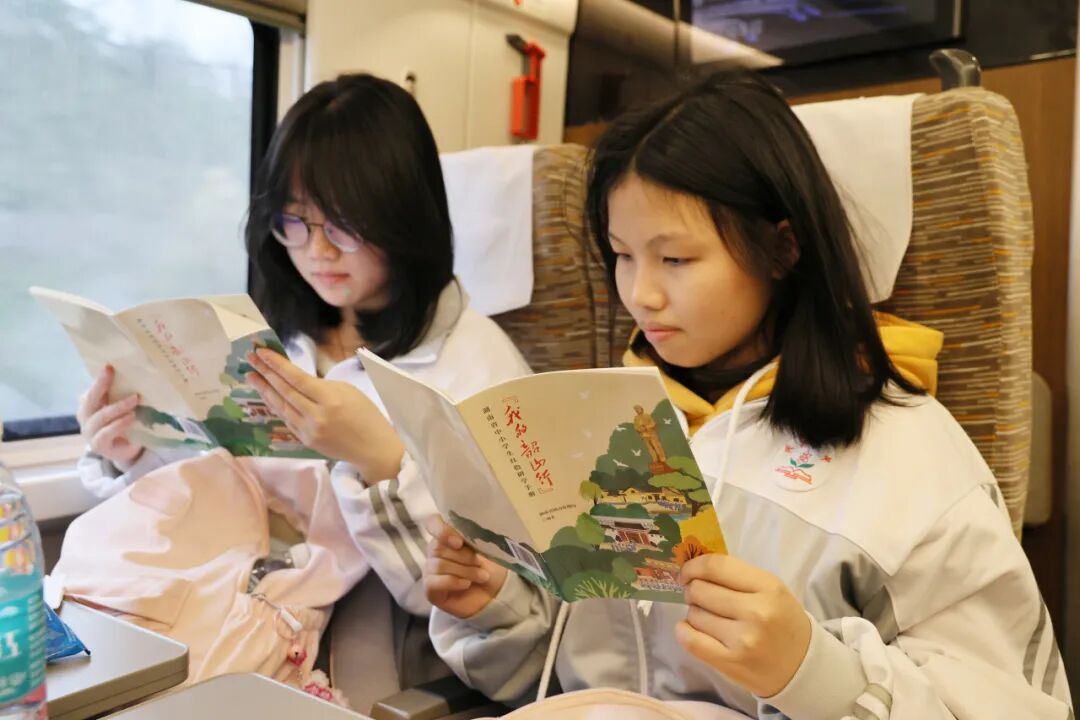 “乘坐高铁去韶山研学,整个行程高效便捷,车上的各种活动也让我对之后的研学行程充满期待。”学生王馨逸说。