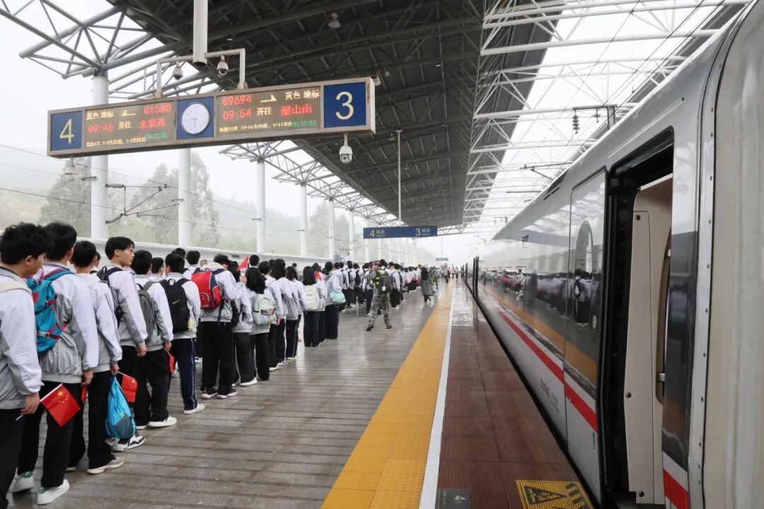 12时01分,G9694次红色研学列车抵达韶山。学生将按照既定课程,继续开展丰富的研学活动,深入学习红色历史,传承红色基因。