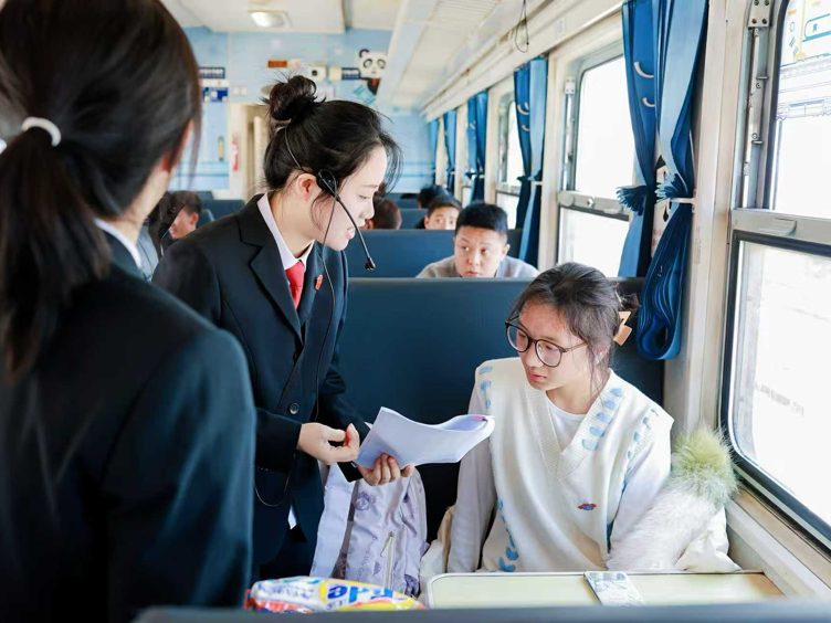 为确保本次研学列车顺利开行,负责担当乘务工作的长沙客运段动四车队精心选派了党员和业务骨干,在列车安全检查、行李放置等方面做了充分准备,力求为研学师生提供专业、温馨的服务。