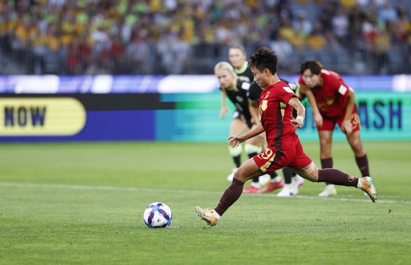 3月17日,中国队球员张琳艳点球射门得分。新华社记者 马平 摄