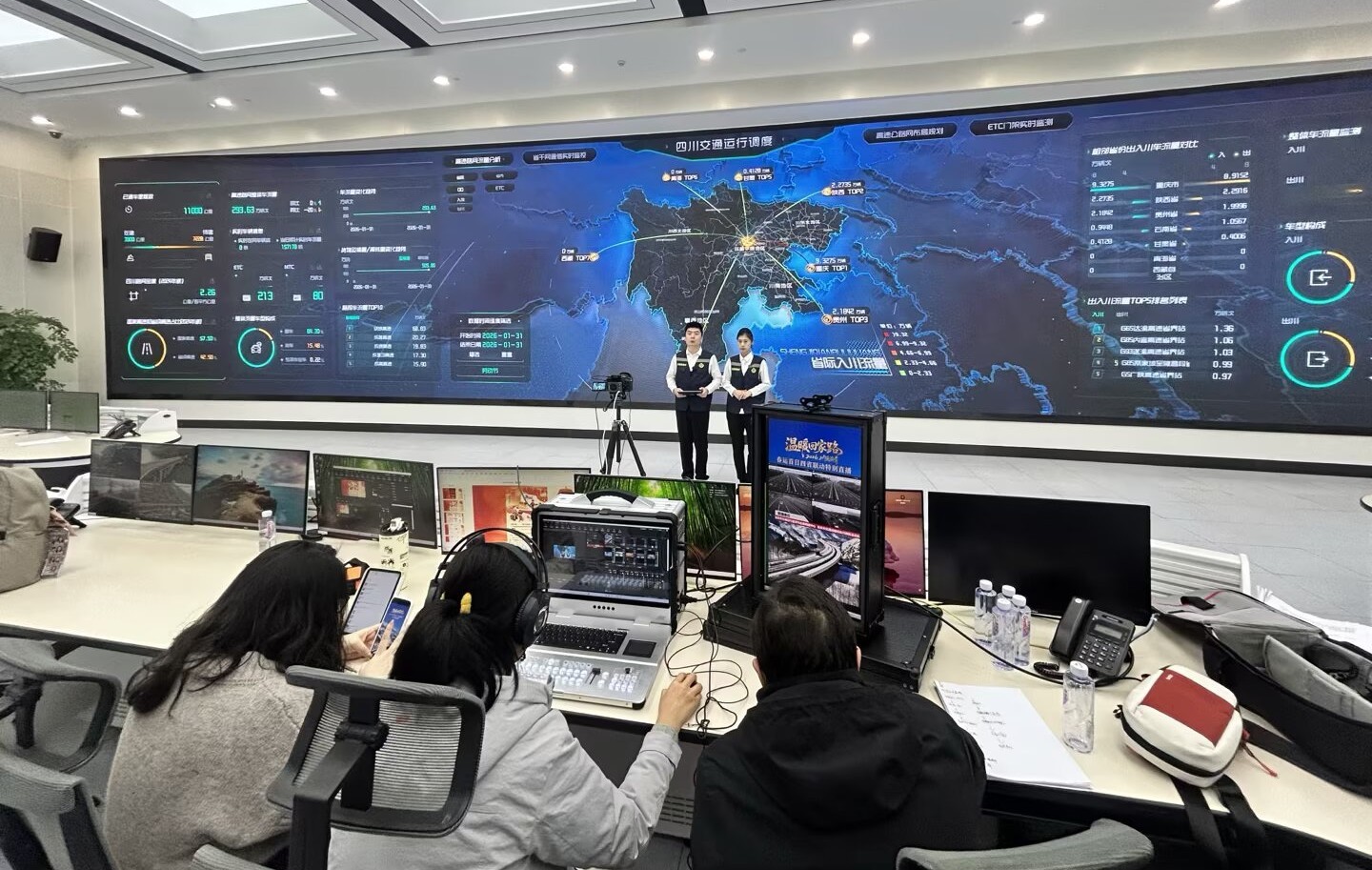 走进四川省交通运输运行调度中心(下称运调中心),偌大的空间里,设置了包括综合、高速公路、普通公路、道路运输、航务海事等在内的多类座席。工作人员介绍,这里汇总了全省公路水路交通的通行情况,能通过高清摄像头,对点位一线进行实时查看,“高峰期,各个环节值班值守紧密配合,实现从‘经验决策’到‘数据决策’、从被动应对到主动预警的转变。”