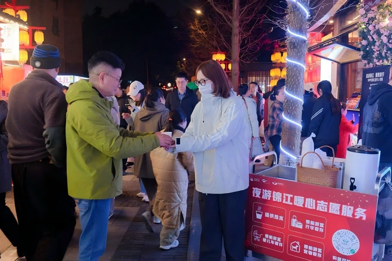 夜游IP破圈,点亮城市夜间经济。成都“夜游锦江”以“神骏出东方·锦江烟火盛”为主题,通过水岸联动、场景重构与科技赋能,将盖碗茶、成都糖画、灯会等非遗民俗搬上水面,让市民游客在行船中了解市井文化。