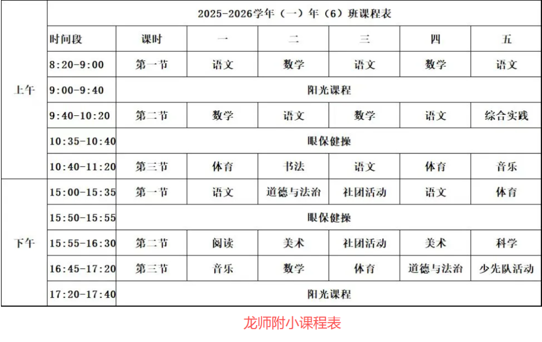 以龙师附小为例,该校一年级作息表中,常规课间均设置为15分钟,覆盖上午10:20—10:35、下午15:35—15:50及16:30—16:45等时段。