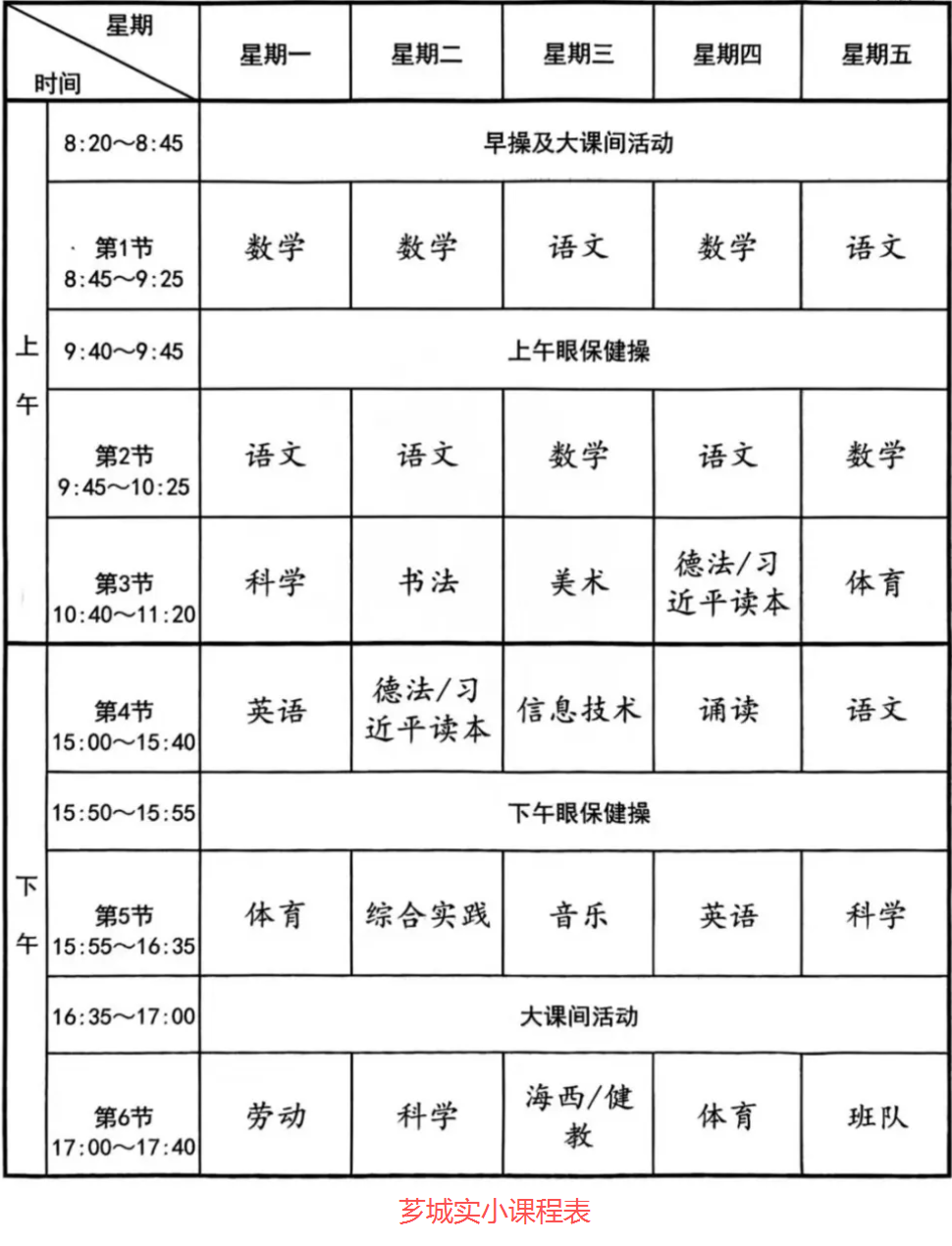 与此同时,学校配套设置了上下午共60分钟的“阳光课程大课间”,其中上午9:00—9:40单次时长达40分钟,眼保健操时段不占用学生自由活动时间,确保学生有充足时间走出教室、放松身心。