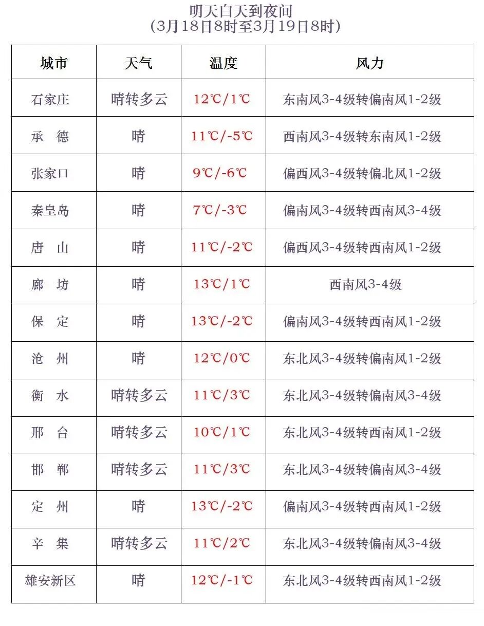 河北省气象台2026年3月17日11时发布天气预报: