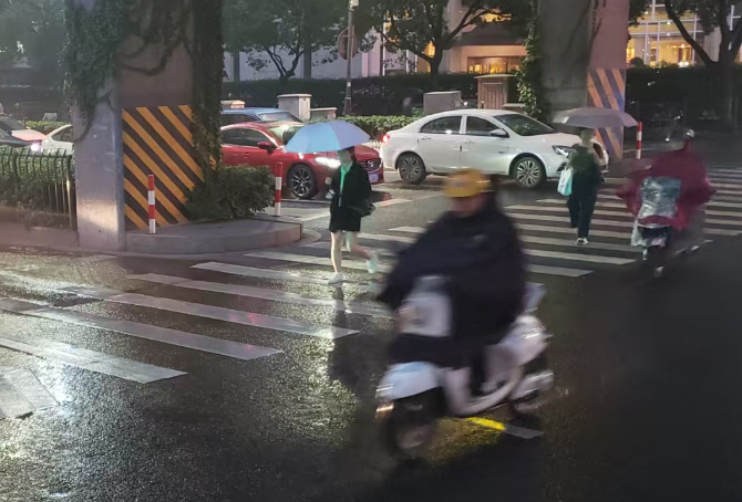 只是雨天路滑,尤其是小区里的石板路、路边的青苔处,走路慢一点,穿双防滑的鞋子,通勤路上多留意脚下。骑行、开车的朋友也别着急,降雨天气能见度降低,切记减速慢行,安全第一。