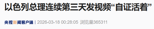当地时间3月17日晚,以色列总理内塔尼亚胡的社媒账号发布一段内容为“内塔尼亚胡会见美国驻以色列大使迈克·赫卡比的”视频——连续第三天通过发视频的方式证明“内塔尼亚胡还活着”。