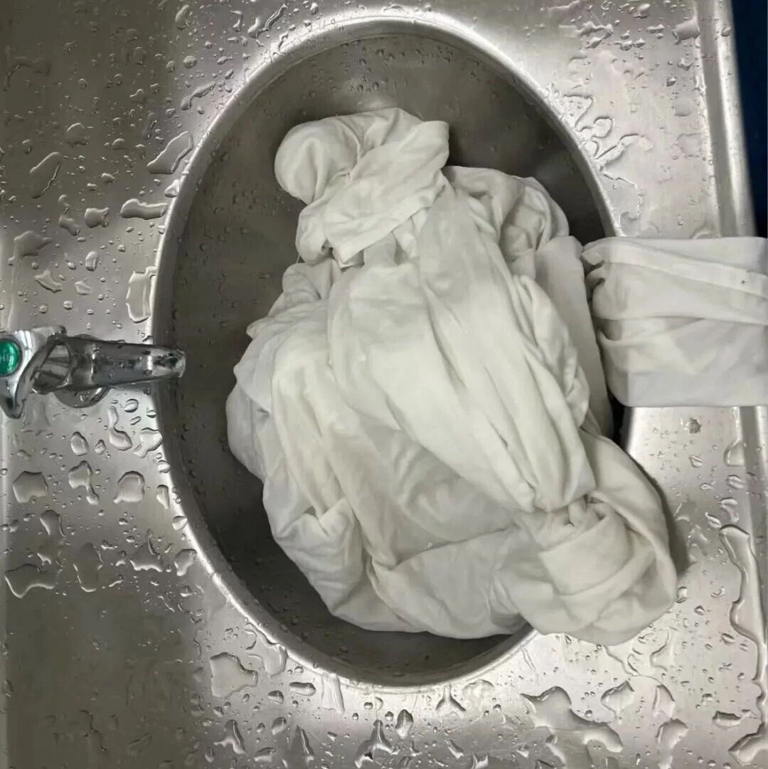 另一位张女士也曾自行清洗污渍床单(受访者提供)